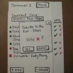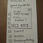 Since the project is about music, I considered an extreme user scenario: how to select the music played between sets at a music concert filled with music enthusiasts. People who go to concerts generally care or have opinions about music, so they would care about the consequences of their selections and votes: if a song a person picked passes the vote of other music enthusiasts, the selector feels a sense of pride; the voting mechanism gives agency to all individuals who feel a part of something and feel their opinions matter. I used Terminal 5 and the LCD Soundsystem concert as an example of a venue where this application could be used, but I realize this may have been too extreme. For bigger bands the bands themselves many times want to control the whole experience down to the music played between sets. The scenario may be better suited for smaller indie bands just getting a start; the band may have a particular sound that they associate with, but perhaps they want to know more about their fan base – how varied are our fans tastes? who else might like our music if they heard it?