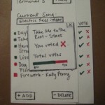 Feedback about the interface included issue of ease of use: the potentially long list of songs to vote on could be daunting and then how often do you check the list to vote on the latest suggestions? One solution to this could be push notifications with simple two button yes/no interface (though a shower of push notifications is invasive too).