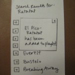 In class there was a suggestion to modify the project concept to inform a live DJ of what the crowd likes. You check into a place through the mobile app and can see what the current song is. A simple interface lets you vote this song ‘Like’ or ‘Dislike’ and the collective votes would be shared with the DJ who gets a feel for what the crowd likes and can choose subsequent songs accordingly. An added feature would be allowing users to look back at songs they liked to be reminded of music they like or learn about new music. After talking to a couple DJs, I’m not sure how many DJs would really use this information – ultimately playing DJ is like playing god, you’re the expert and you know what’s best.